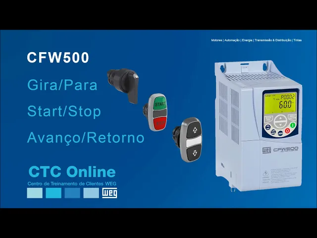 E aí a pular algumas funções são muito utilizadas para acionar inversores de frequência Neste vídeo veremos os comandos gira para start-stop e avança o retorno aplicadas ou inversor de frequência cfw500 a função gira do inversor quando ativada liga o motor por rampa de aceleração até a velocidade de referência e quando desativada ou seja para desliga o motor por rampa de desaceleração até parar nesse vídeo faremos utilização desse recurso comandado por uma entrada digital parametrizada para a função gira para no comando gira para também chamado de liga-desliga ou ainda comanda dois fios é recomendado a utilização