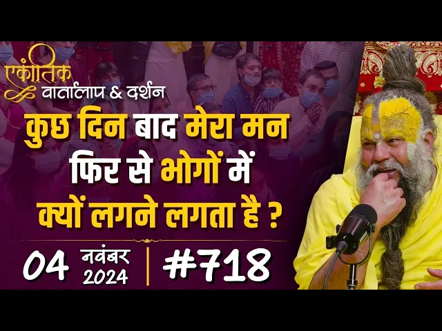 है या किसी भी इंद्री का भोग और वो राइट है आपके लिए धर्म युक्त है तो आप फिर उसका सहयोग कीजिए देखो मन ही आपको वृंदावन लाया है मन ही आपको एकांतिक में बैठा ले अगर यह खिलाफत कर दे तो आप बैठ नहीं सकते हो ये इतना जिद्दी स्वभाव का है यह अगर अपने हाठ में आ जाए तो इस पर विजय पाना बहुत कर तो इसको दुलार भी करना है मन से एकदम बिगड़े नहीं रहना धर्म युक्त भोग मांगे फिर इसे दे देला है और अधर्म युक्त मांगे तो फिर तू चाहे जितना जला यह मैं