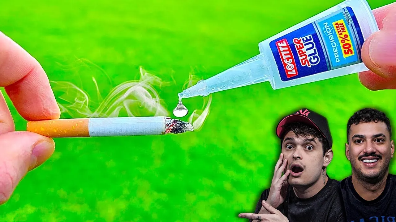 um vídeo sei s sei cham cham até um cientista o professor é aí ó você falou que tinha que mostrar Ah essa aí é é curiosa hein para esse experimento foi utilizado um cigarro um super bonder e um isqueiro usando a cinza a super bonder dá pr fazer muitos reparos vira tipo um Durepox vira tipo aquela aqueles vídeos de miojo né quebrou a madeira taca miojo Cola raspa esmalte tá tudo certo ninguém vai perceber mas vamos ver esse aqui agora que eu tô curioso mano Cola com cigarro queimou o cigarro pegou a cinza macetou ali
