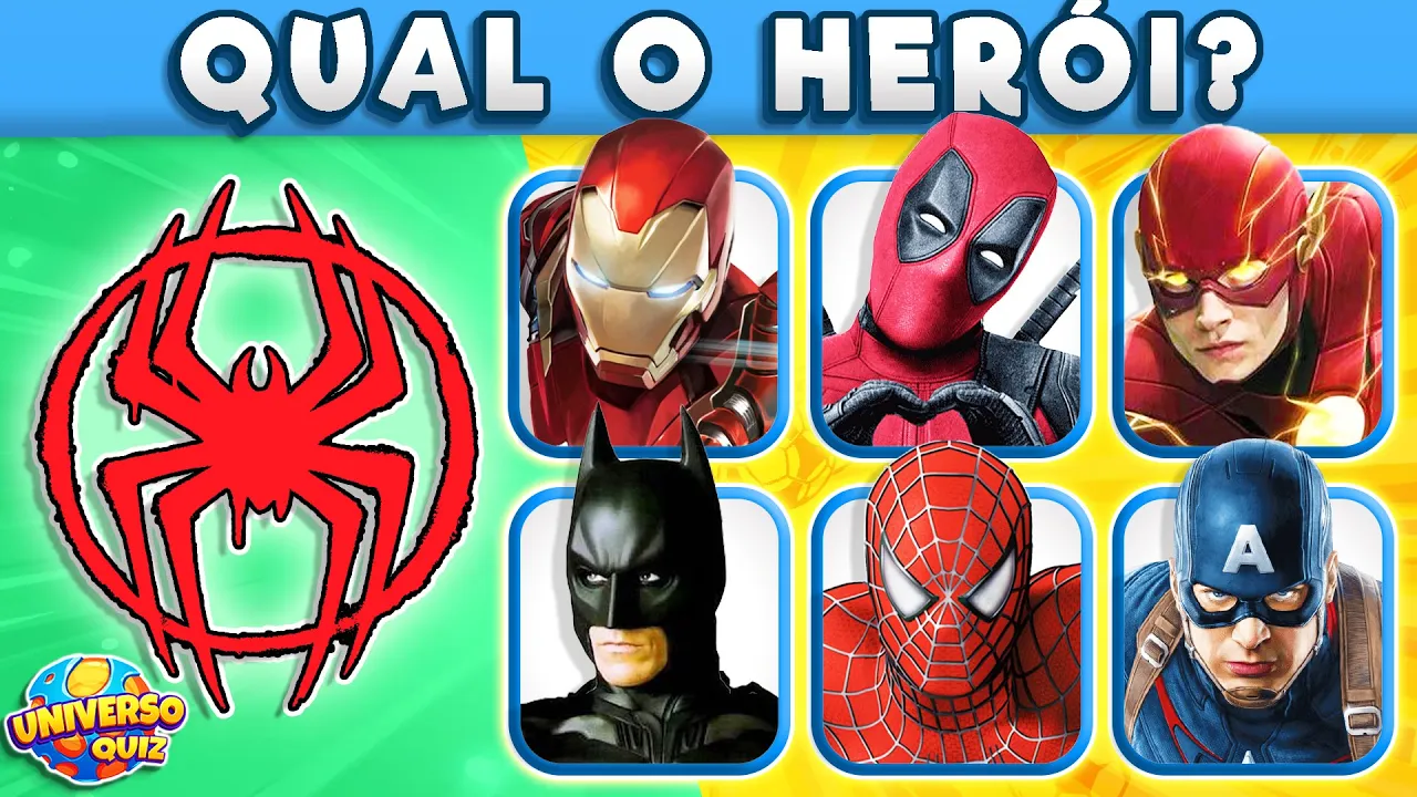 adivinhe os super-heróis pelo símbolo Oi turma do universo Quiz nesse vídeo você terá que adivinhar os heróis pelo símbolo aparecerá o símbolo de um herói e seis alternativas Observe as opções E adivinha qual herói o símbolo pertence a cada resposta certa some um ponto me diga aí nos comentários seu resultado e diga também Qual o seu super-herói preferido você está no universo quiz e se você é no por aqui já se inscreve no canal e Ative o Sininho das notificações Pois todos os dias Tem vídeo novo já deixa o like e vamos pro vídeo número