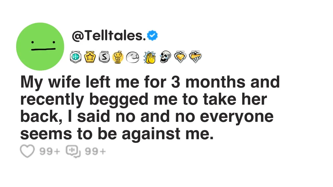 my wife left me for three months and recently begged me to take her back I said no and no everyone seems to be against me I need some advice strangers well let me give some background information as the situation will be hard to understand without it seven years ago I got married to the girl of my dreams Denise fake name we had been dating for two years before that and it was like a dream come true that changed after our marriage after our marriage she constantly started feeling down and out of it and eventually I