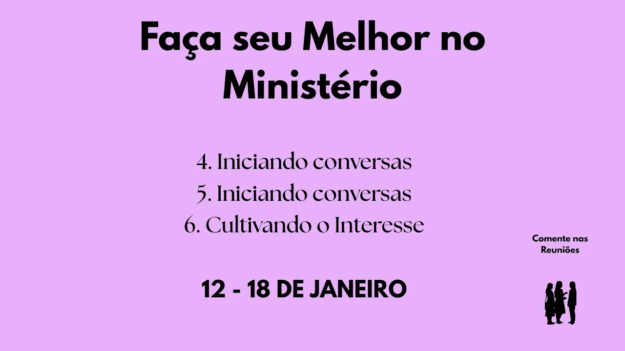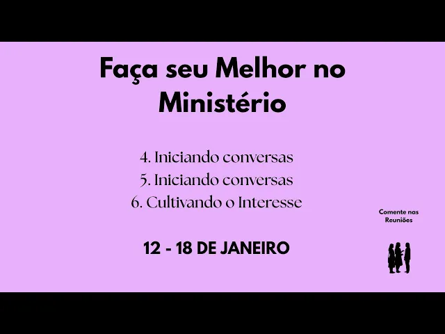 Olá, irmãos e irmãs. Bem-vindos ao canal Comente nas reuniões. Hoje vamos compartilhar sugestões de modelos de parte para ajudar os irmãos em suas designações na sessão de Faça Melhor no Ministério da semana do dia 12 a 18 de janeiro.