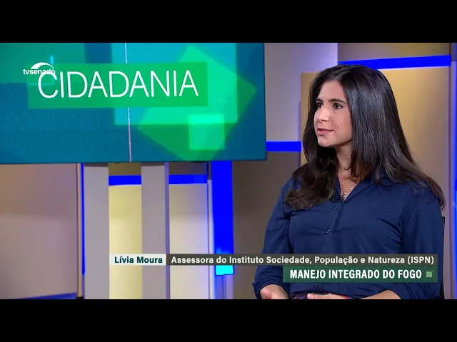 [Música] entenda o que é o manejo integrado do fogo assistindo a entrevista que começa agora enquanto incêndios florestais ameaçam nossos biomas O Senado aprovou um projeto de lei que instituiu a política nacional do manejo integrado do fogo como forma de preservar as nossas florestas e melhorar a produção agrícola meio ambiente e agricultura são assuntos de cidadania e sobre isso que eu converso agora com a assessora técnica do Instituto sociedade população e natureza Lívia Moura Lívia muito bem-vinda ao programa cidadania obrigado pela presença por aceitar o nosso convite muito obrigada Marcelo pela oportunidade é um prazer