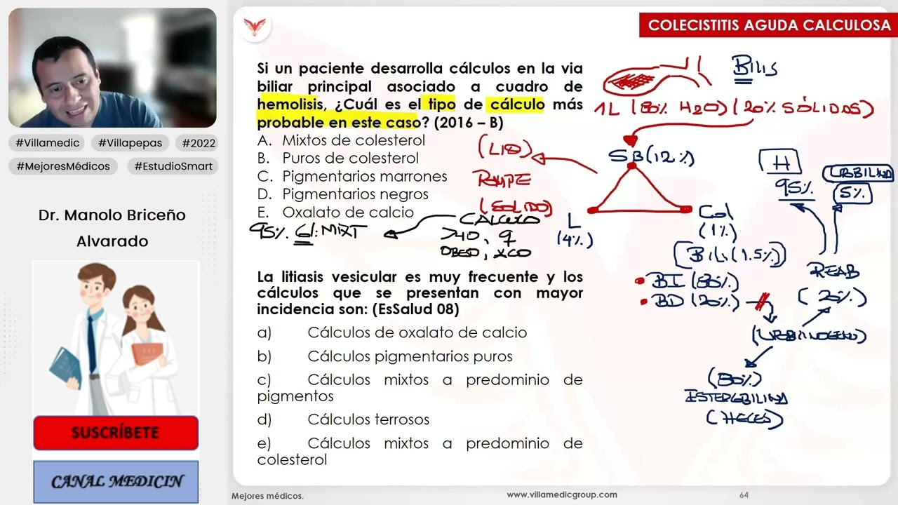 oblicuas y transversas son para para los casos No complicados no [Música] Y si están complicados es decir hay peritonitis y demás se prefiere las incisiones medianas infrahumbilicales ok vamos con la colelitiasis la litiasis llamada también litiasis vesicular cálculos en la vesícula bajo la número 61 patología de vía biliar Cómo se denomina al hallazgo casual y asintomático de cálculos en la vesícula Si encuentran cálculos en la vesícula se denomina litiasis vesicular o su propio nombre arriba lo dice Cole litiasis Ok Muy bien los cálculos primarios más frecuentes de la vesícula los primarios los que se originan