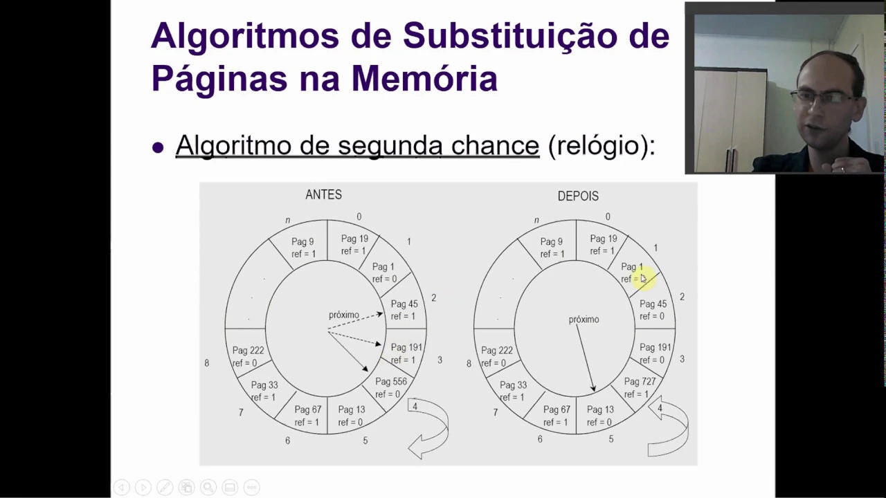 SO Memória Virtual - Algoritmo de segunda chance (relógio) para substituição de páginas