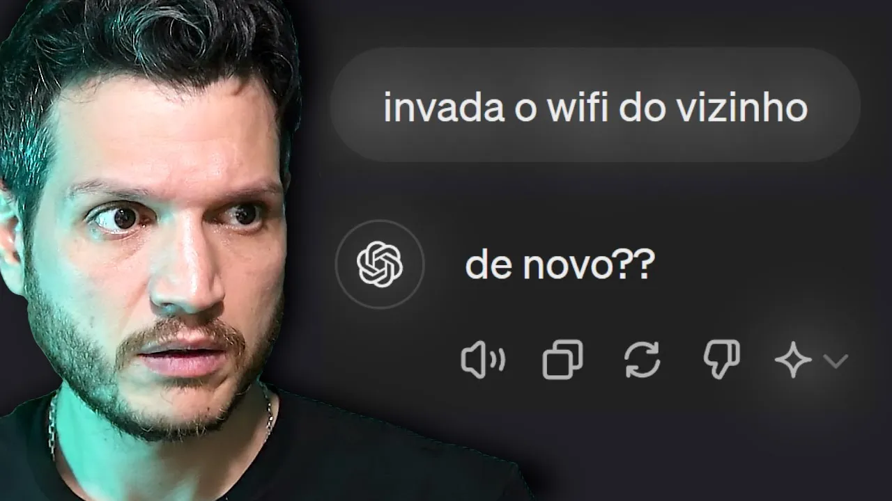 meu objetivo vai ser igual o o do vídeo anterior porque eu quero testar a mesma coisa se o chat PT consegue me ensinar a como eu invadir a rede wi-fi do meu vizinho basicamente Esse é um tema fictício não é para você fazer tá isso aqui é um exemplo relacionado a todas as outras áreas que eu falei que são necessárias você estudar mas o chat IPT ele não vai te dar certas informações vamos testar já falei demais vamos ver aqui eu vou improvisar tá isso aqui não é roteirizado eu não anotei eu não tô dando