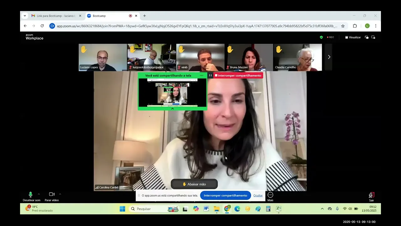 gente vai até 1 da tarde. Hoje a gente tem Luciano, Luís, Vine, Bruna, Valdair, Jonathan, Cláudia, Viviane para falar. Lembrando que a gente encerra Pontualmente à 1 da tarde. Então vamos lá, Luciano, que que você manda, Carol? O meu hoje é bo rapidinho. Eu já entrei logo no início porque eu tenho duas audiências virtuais aqui. Aí vamos lá. Hoje é planilha, tá, Carol? Tá bom. Eu vim esses dias aí trabalhando com Gustavo. Uhum. Tá aparecendo para você, né? Tá. Tá. Então, eu cheguei a inclusive encaminhar essa planilha pro Gustavo, né? Ele deu Umas sugestões e