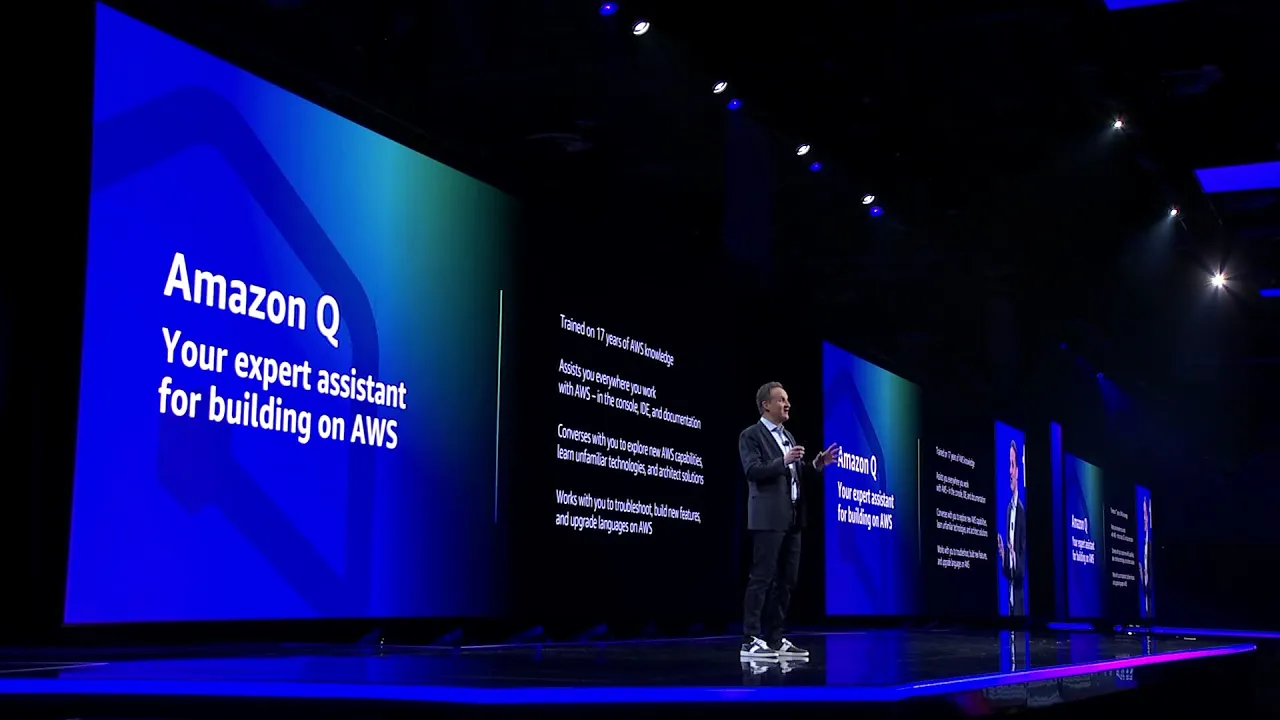 (upbeat music) - That was awesome. Amazon Q is gonna make a huge difference for businesses. Employees are gonna love how Amazon Q is gonna help solve problems, discover and synthesize new information, and lift folks out of monotonous, drag, repetitive tasks.