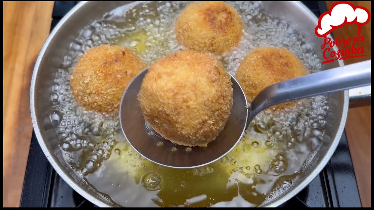 a few minutes so we can get one there I got a spoon just take a small amount and let's start modeling with our hands and that's great, now we just pass it in wheat flour and then in a beaten egg and in the flour and then in the or and after passing in the egg now we go in the breadcrumbs all ready Just repeat the process with the rest of the dough and people are ready our languettes now we just take them to fry in hot oil hello people be careful with the t temperature of
