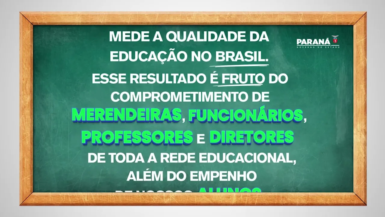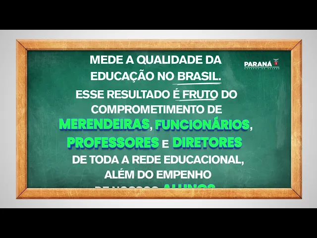 o governo do Paraná informa mais uma vez o Paraná foi reconhecido como a melhor educação do país segundo o Ministério da Educação o estado lidera o ranking Geral do Ideb o índice que mede a qualidade da educação no Brasil Esse resultado é fruto do comprometimento de merendeiras funcionários professores e diretores de toda a rede Educacional além do empenho de nossos alunos Paraná terra de gente que trabalha educa e cuida Y