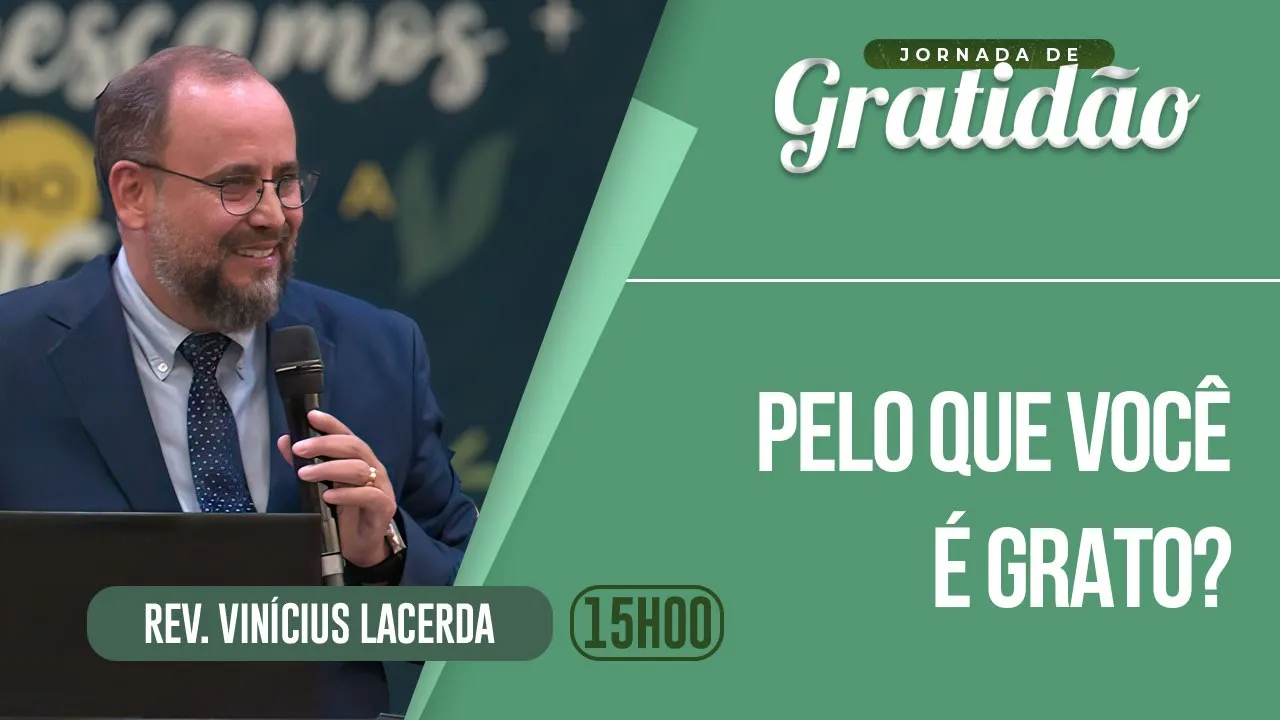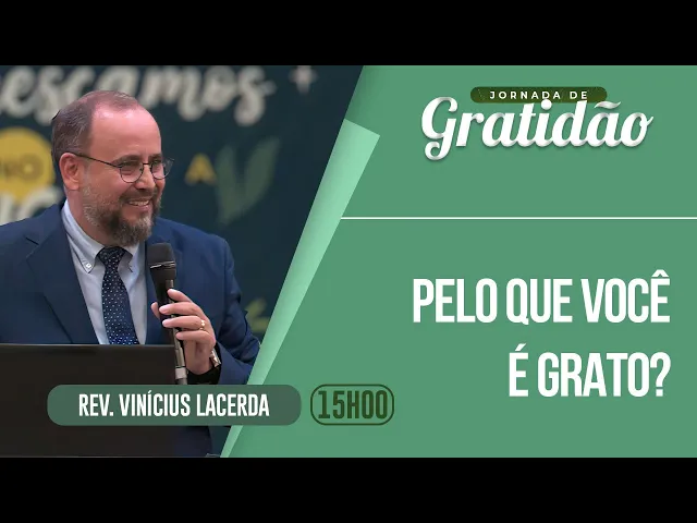 [Música] a graça e a paz do nosso Senhor Jesus amados irmãos e irmãs Deus abençoe muito a vida de cada um de vocês Peço aos irmãos que permaneçam de pé para a leitura do Evangelho da graça no terceiro evangelho Lucas o médico Amado que registra nessa passagem preciosa do Capítulo 17 dos Versículos de 11 a 19 a cura de 10 leprosos texto conhecido mas que traz o tema nessa jornada de adoração e jornada de gratidão que temos no dia de hoje a seguinte pergunta é o tema da mensagem pelo que você é grato e devo