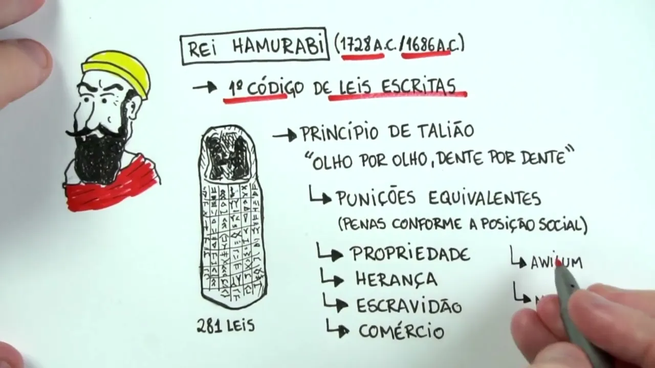 então era também registrado na forma de Cunha né Essas leis foram esculpidas nessa pedra cilíndrica eh da maneira cuneiforme certo [Música] eh esse essa pedra hoje eh o código de amurabi ele se encontra no museu do luvre em Paris certo Bueno gente outro elemento importante aqui do Primeiro Império babilônico é que o amurabi vai eh decretar né o marduk o Deus mardu como o Deus supremo do Panteão dos Deuses o Deus dos Deuses Então já temos um código de lei padronizado em todo os domínios do Primeiro Império babilônico e agora nós temos um Deus que