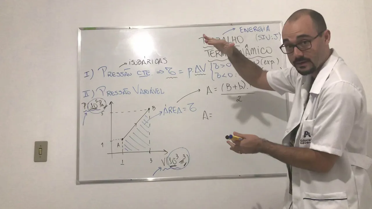 trabalho é a variação do bolo tá no quanto a variação do volume for positiva e o trabalho é positivo ou seja aqui houve uma expansão o gás aumentou o volume ele realiza o trabalho trabalho positivo tá bom o trabalho vai ser negativo eu só fã da variação do volume forma negativa ou seja quando acontecer uma compressão você tá esmagando gás ainda sofre o trabalho da ambiente tá bom é assim que a gente separa no status agora pessoal tem um caso tem algumas transformações onde a pressão é constante a pressão variável e aí pessoal vai entrar