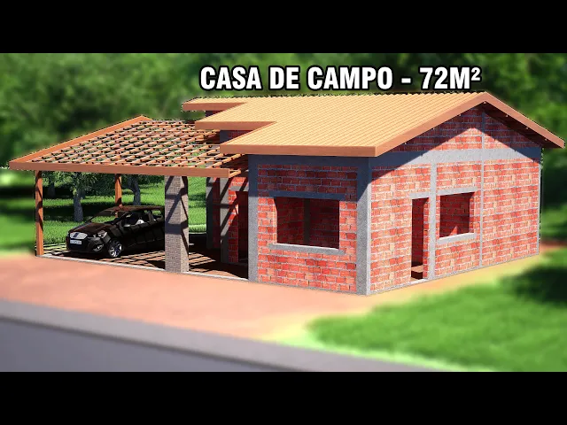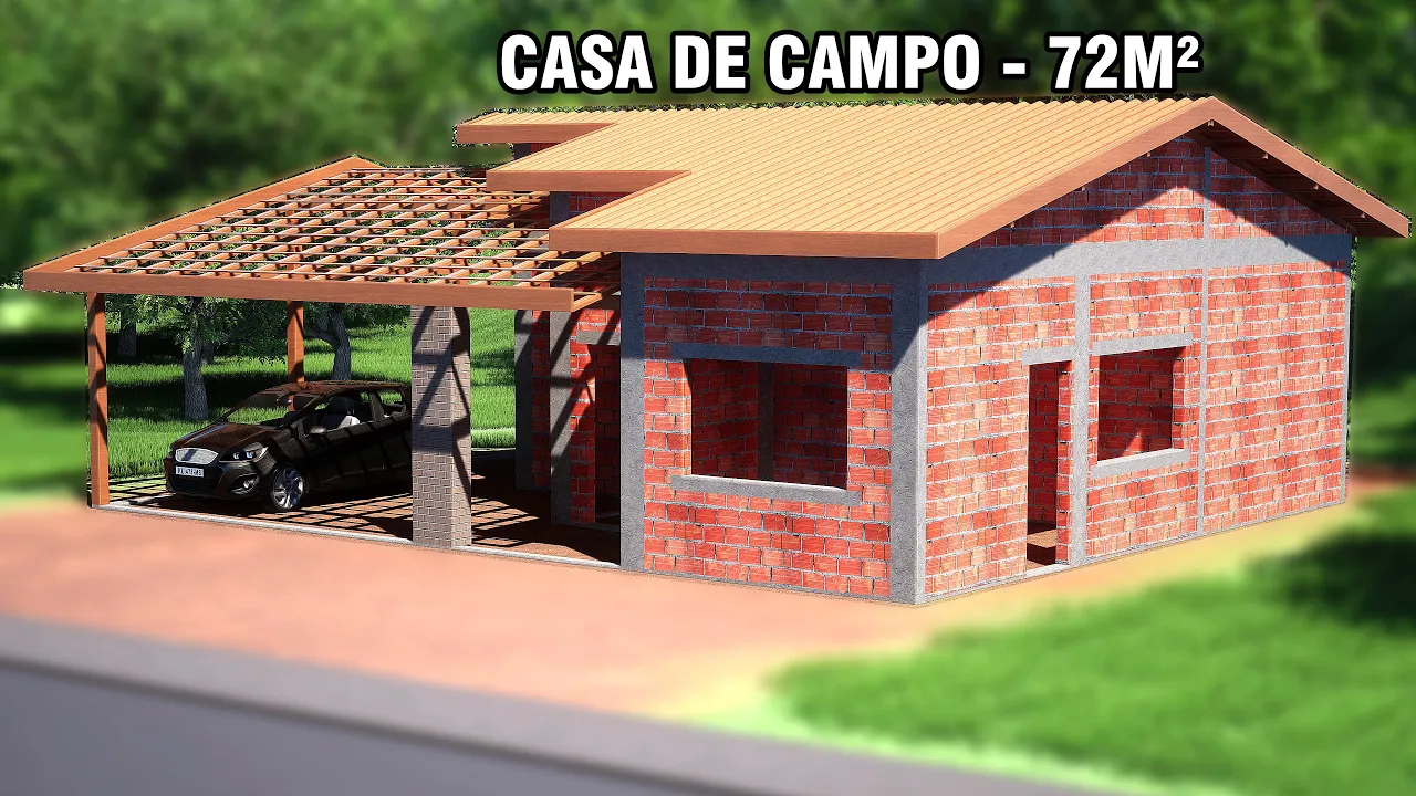 Olá pessoal tudo bem hoje no vídeo eu vou apresentar para vocês um novo modelo aqui no canal esse modelo aqui de casa que eu vou apresentar para vocês hoje é um modelo no estilo casa de campo ou casa de chakra um estilo com telhado aparente garagem e aberta na parte frontal utilizando aí e uma varanda mais Ampla também na parte frontal vou mostrar todos os detalhes e alguns materiais aí também da parte construtiva e também as áreas internas aí de cada um dos ambientes e os materiais aí com os tijolos como eu já falei em alguns vídeos vou mostrar outos detalhes também para vocês aqui alguns pontos específicos para construção de uma residência como essa aqui eu falei para vocês aqui que o estilo é uma estilo casa de campo porém que a gente já deixou e com os afastamentos que permite a implementação de uma área já eh com as dimensões de aproximadamente uns 15 m de largura a gente consegue implementar essa residência aqui já deixando os afastamentos laterais aí de 1,5 M em dandas laterais ou seja um lote aí de 15 m de largura a gente consegue e implementar essa residência eigual tá aqui no vídeo já com os espaçamentos aí laterais os recursos laterais de 1. 5 M Então a gente tem aí de construída os 12 m de largura e 10 m de comprimento totalizando a 120 M qu Porém Aqui a gente tem uma área bem Ampla de varanda quase que ocupa metade apenas da área de 120 m ou seja a gente vai ter 72 M qu apenas de área construída com as divisões internas que eu vou mostar um pouco à frente para vocês e vai ter aí uma área bem Ampla de varanda quase que metade da área sendo ocupada aí pelas Varandas externas que vai reduzir aí bastante a questão dos materiais de implementação da residência nós teremos uma área bem aberta na parte frontal onde utilizaremos aí da com utilizaremos aí como área da garagem e utilizaremos também como área com totalizando aí toda essa parte construída e integrada também essa parte da varanda aqui entre garagem e área Gom bom a questão dos materiais aí quantidade de tijolos a gente tem aí é aproximadamente 3000 unidades aí com os tijolos n dimensões de 29 de comprimento tijolo aí que pode ser de 11,5 de largura ou 14 mas comprimento aqui é um pouco maior do que aquele de 19 por 19 então a gente consegue reduzir o número de unidades aí para implementar e também é um tijolo com uma largura um pouco maior do que aquele e Menor de 9 cm Então a gente tem um consumo aproximad de 3 unidades já contando aí as iluminações aí que a gente vai ter que fazer para implementar o telhado toda a parte construída é aproximadamente 3. 000 unidades dessas dimensões desse bloco pouco à frente vou falar para vocês também outros materiais Como de contrapiso emboço e um dos materiais que eu não costumo mostrar e falar aqui para vocês é a questão da fundação porque Varia muito eh a uma fundação de uma residência como essa aqui pode ser apenas um Baldão num terreno que for bem firme aí tiver uma boa compactação ou será necessário implementar aí uma uma Fundação mais Rasa ou também até o um um bloco sobre estaca a dependência com solo bem eh bem fraco e com resistência bem baixa então isso aí vai depender muito do local de implementação de uma conção como essa aqui por isso eu não falo aqui a questão dos consumos de materiais aí para implementar o residência como essa aqui na parte de Fundações as divisões internas Ficaram bem simples A gente vai ter na parte dos Fundos dois dormitórios sendo o da direita a uma suí e vamos ter também Centralizado aí o banheiro eh e na parte esquerdo teremos o outro dormitório e um quarto eh e um pequeno corredor de acesso a esses ambientes para fazer também eh uma uma área mais privada de acesso a esses dormitórios em relação à parte da cozinha e sala de TV que será eh integrada nesse ambiente frontal aqui que será totalmente integrado com um ambiente aberto aqui nessa área Além disso na parte da cozinha utilizaremos uma porta bem Ampla que vai dar acesso integração também com a área externa aí da área condir com a cozinha interna da residência Então vamos vou fazer um pequeno resumo para vocês apenas os materiais Então a gente tem 72 M qu de área construída teremos dois quartos uma suí de 12.