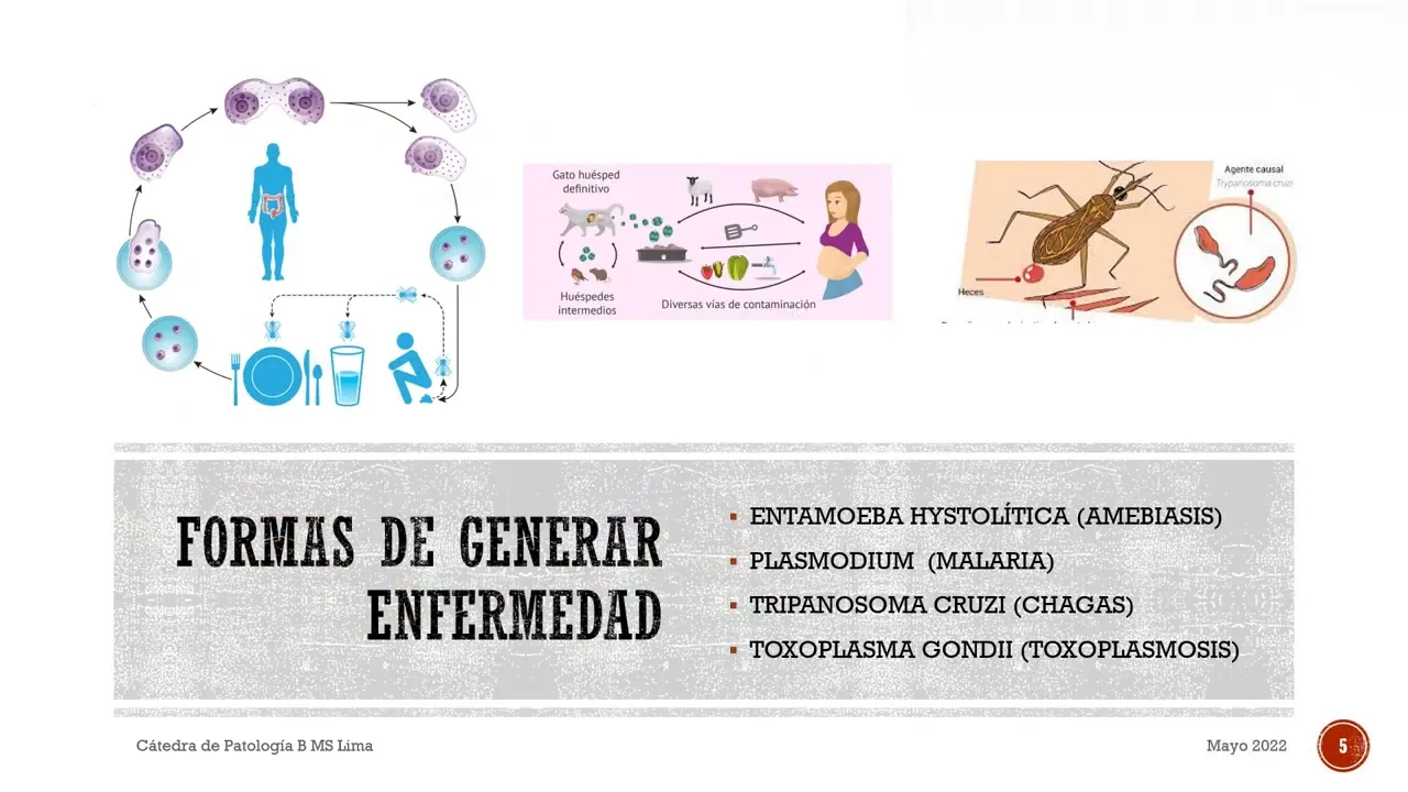 ciclo de la malaria puede como observan transmitirse al feto en general entonces el contagio por vectores y la llegada de entonces puede ser por mosquitos como es el caso de la malaria por triatoma o vichuca como es el caso del trypanosoma o ligado a los alimentos y el agua como puede ser la ameba la amebiasis en general estos microorganismos tienen un ciclo en el otro huésped o sea cumplen parte de su ciclo en el otro huésped y son inoculados al ser humano para completar su ciclo como generan en la enfermedad los protozoarios no pueden hacer