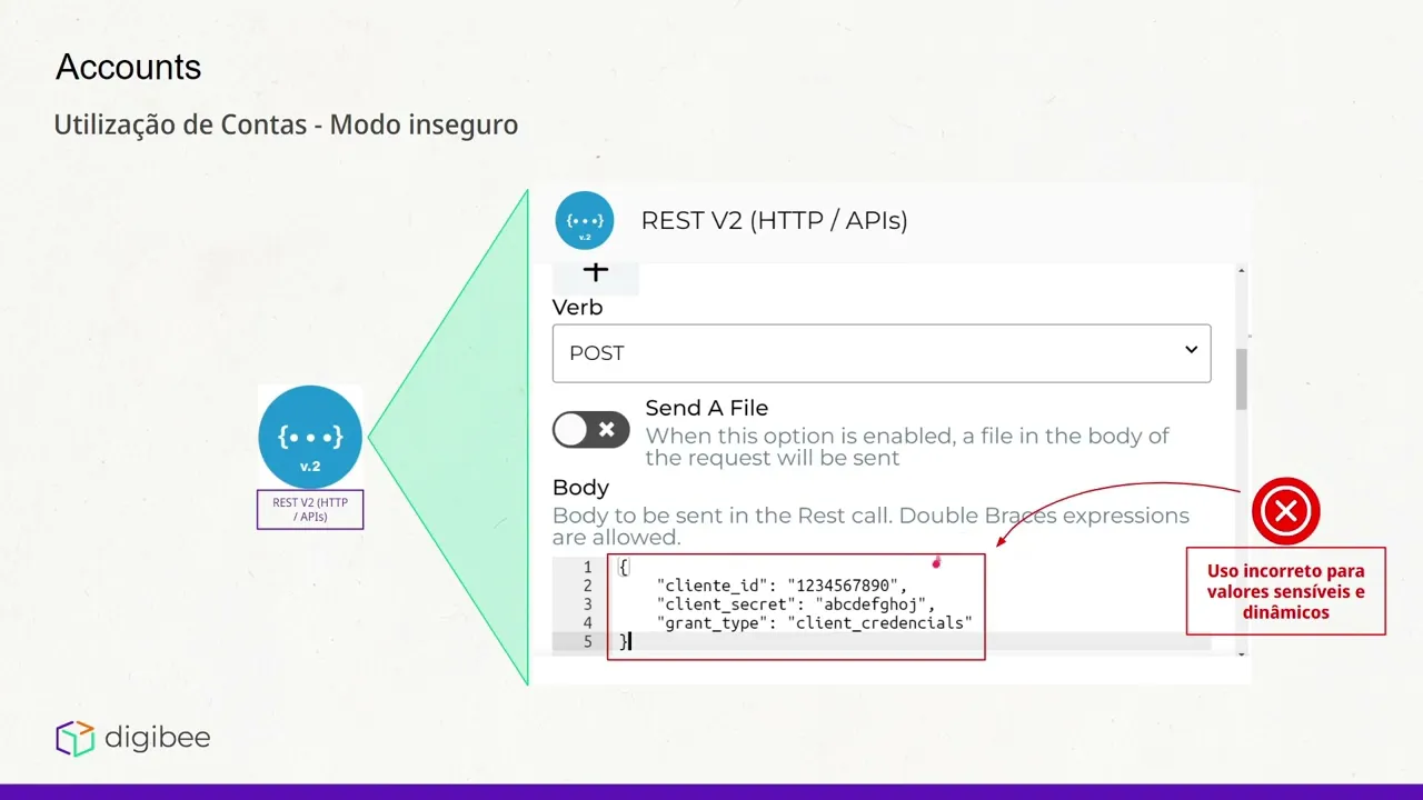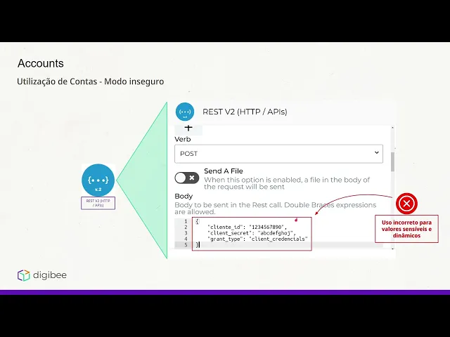 na plataforma uma única vez nós teremos que apenas republicar os 50 blacklines e nenhum dos processos anteriores teria que ser feito repetidamente falamos sobre accounts O problema é que ela acaba te resolve é muito parecido com o problema que a Globo resolve a diferença é que a count nós estamos lidando com valores sensíveis então aqui no mesmo contexto temos uma requisição web que precisa de enviar credenciais de acesso por meio do Bore ou por meio dos headers aqui nós estamos vendo os valores estáticos Então se essas credenciais de acesso mudarem nós teremos que abrir o