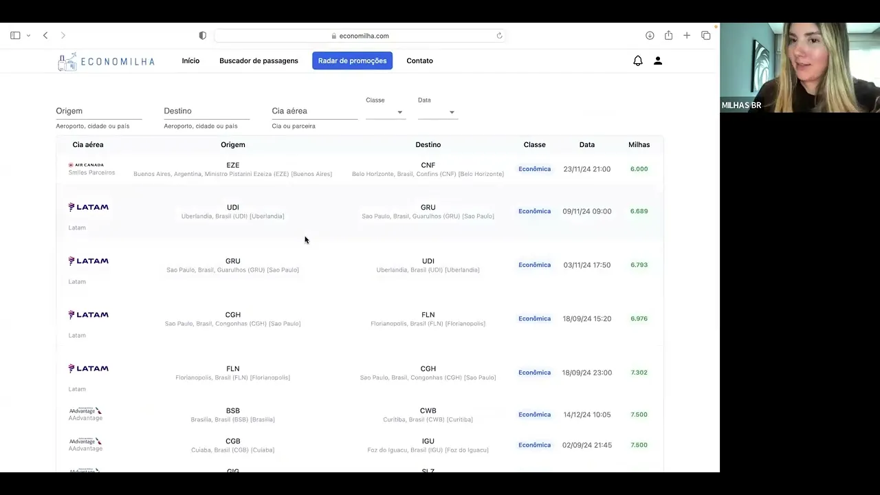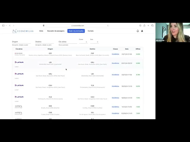 000 milhas aa que é adinho com a Smiles aqui ó Smiles voando com America Airlines Guarulhos para Miami por 57. 800 is aqui é com Clube a gente considera com Clube sem o clube não com o clube sem o clube é para quem não assina nossos nossos fornecedores eles eles são profissionais então provavelmente eles vão ter o clube no caso aí essa emissão essa tarifa 57 ve 15 que é o valor do milheiro a 10 milos R 867 mais a taxa de embarque que você procura que você visualiza no programa daos e é importante depois que você verificar aqui na ferramenta ah encontrei a melhor data a melhor data aqui um exemplo vai ser de 16/02 na Smiles voando com America Airlines você entra na Smiles verifica Guarulhos para [Música] Miami na data 16/02 vê se tem acento disponível que lá mostra Ah Dois assentos disponíveis seis assentos disponíveis E aí você vê também a taxa de embarque então o valor aqui ó ficaria 867 mais a taxa de embarque tem que ser verificada no programa fidelidade a qual você olhou aqui a a tarifa a emissão né né então o economia ele faz essa busca de passagens da origem pro destino que você selecionou na data que você selecionou nas datas de 15 15 dias com os programas também que você selecionou e com a cabine Então esse é o buscador Além disso economías O economía ele tem um radar de promoções o que é isso vou mostrar para vocês agora ele mostra simplesmente o calendário de todas as promoções diárias todo dia isso vai atualizar vai atualizar todo santo dia essas promoções então assim vai desde Nacional até executiva então aqui vai mostrar é só o trecho não é ir de volta é apenas o trecho Então vai mostrar aqui as promoções na é de todo o Brasil junto aqui de todo o Brasil promoções nacionais promoções internacionais Econômica promoções executiva promoções dentro de outro continente Como por exemplo o europeu tá então é isso aqui que o rar de promoções most vamos lá Buenos Aires para Belo Horizonte pela Smiles por 6000 milhas gente isso é é um achado ve 15 ou seja R 90 voando com a Air Canada então ó programa é da SM programa Sempre embaixo e a companha aérea que vai voar em cima então é o programa da smes parceiros voando com a aada Buenos Aires para Belo Horizonte 6000 milhas o trecho dia 23/11 dá R 90 Então tem que olhar as taxas também cuidado com as taxas Quando eu digo quantidade milhas é muito baixa não é só isso que define e o valor de uma emissão são três pontos quantidade de milhas valor do milheiro e taxa de embarque valor do milheiro aqui tá ok porque é p maisos é o milheiro mais barato quantidade de milhas também tá ok falta verificar a taxa de embarque Se for muito alta não compensa Se for muito baixa aqui tarifa mais do que award tá então ó vamos lá Uberlândia para São Paulo 6689 e São Paulo Uberlândia também tem uns só um trecho aqui ó se fosse ida para São Paulo e aqui a volta mas é separado e vamos botar aqui ó até 50 aqui as buscas que a gente vê tanto a compania aérea A Origem o destino a classe A data né com o horário e a quantidade de milhas por trecho você também pode fazer uma pesquisa aqui ah quero sair de São Paulo você bota São Paulo que vai aparecer as buscas só São Paulo Tá então vamos dar uma verificada aqui das dos dias do dia porque no Brasil eh ainda é de noite aqui Eu tô em Dubai 8:24 provavelmente aí deve ser deixa eu dar uma olhada aqui que horas é aí aí 1:24 então não atualizou paraa segunda-feira ainda está aqui as promoções de de domingo ó Salvador do Campinas 10. 000 milhas o trecho 10.