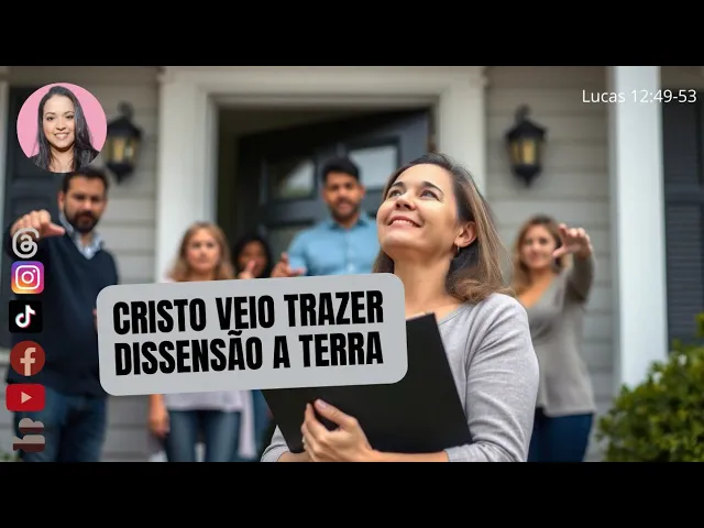 vai causar conflito dentro das famílias amizades no meio da soci a rejeição por meio dos seus então Jesus aqui não tá dizendo que vai ser mil maravilhas não o evangelho Genuíno né que os cristãos vão estar vivendo não o evangelho falso como nós estamos vendo por aí ele vai causar Exatamente esse resultado Então nós vamos ver pessoas tendo divergência por causa da palavra de de Deus e isso não significa que eh o crente ele veio para brigar porque a palavra do senhor de deixa bem claro Olha o Cristão né o servo do Senhor não convém