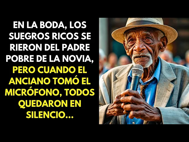 En la boda los suegros ricos se rieron del padre pobre de la novia pero cuando el anciano tomó el micrófono Todos quedaron en silencio El Sol de la tarde se filtraba por las cortinas de encaje de la Modesta sala de los Gutiérrez iluminando El rostro preocupado de Alejandra sus manos temblorosas sostenían una invitación de boda elegante y costosa que contrastaba con la sencillez de su entorno en el Pequeño sofá gastado su madre Elena la observaba con una mezcla de Orgullo y temor mija Estás segura de esto preguntó Elena su voz cargada de preocupación los San
