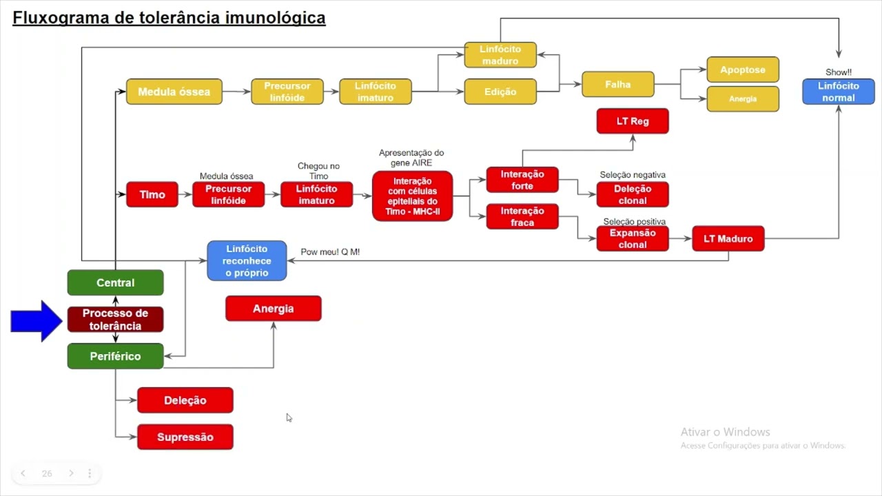 um processo conhecido como apoptose ou Morte celular programada Então até uniforme do ter no processo de amadurecimento lá no Timo Onde posso te lembra que no último ele é apresentado para um anti-jo próprio E se ele reagisse antes um próprio ele sofre uma morte programada chamado apoptose tanta células importa ter quanto linfócito b e isso é muito bom porque senão ele vai geral que é uma doença último Então olha aqui eu isso pode ocorrer lá na minha medula óssea ou no Timo para que é chamado de tolerância Central é é onde ele já são apresentados