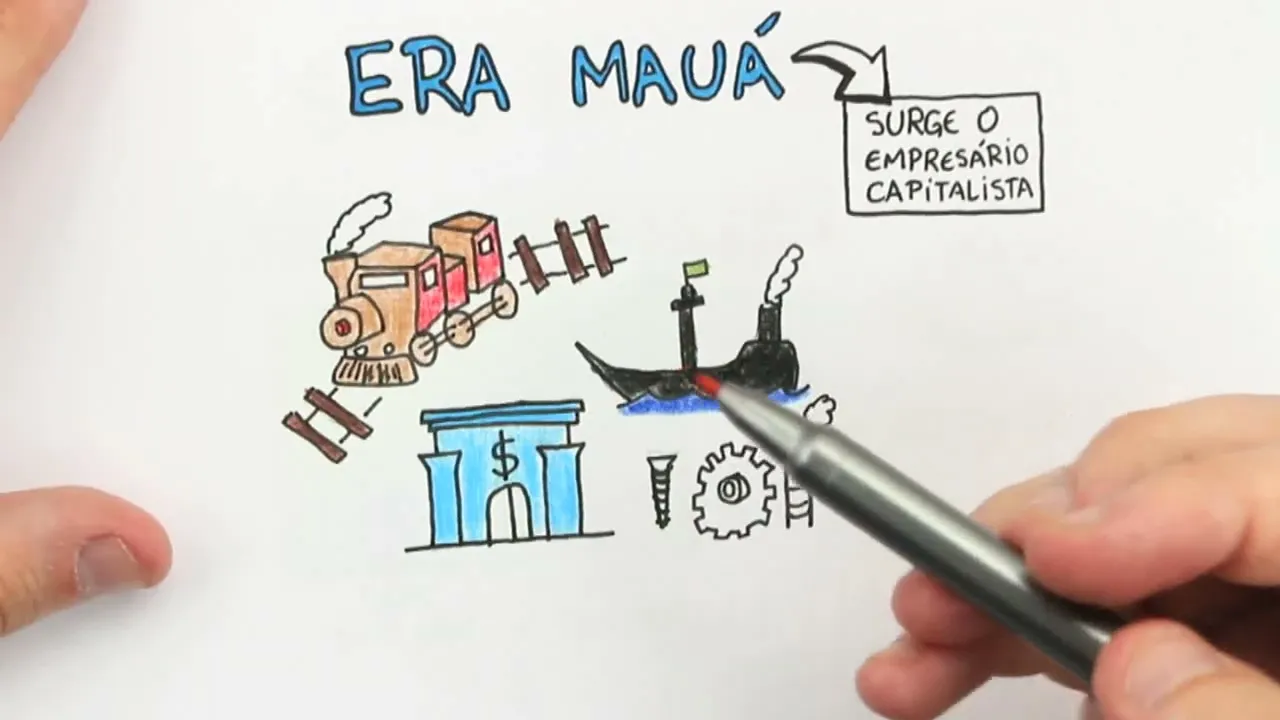 é mais de Economia agrária que esse empresário capitalista vai se eh vai empreender né Agora é a partir de uma Indústria então o Mauá ele começa Ó construir estradas de ferro certo começa a construir eh fábricas de navio a vapor Ele vai construir bancos Ele vai construir uma uma fábrica de produção de prego de engrenagens de soldas de prensas eh elementos para acelerarem a produção de açúcar nos engenhos para modernizar os engenhos brasileiros então ele vai construir diversas produtos de ferragem que vão servir para para e expandir a indústria no Brasil ou dar início a
