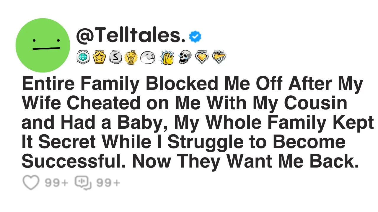 entire family blocked me off after my wife cheated on me with my cousin and had a baby my whole family kept it secret while I struggled to become successful now they want me back so there's a lot of context here kindly bear with me as I explain this whole situation to my family right now I'm 44 male and have been married for 10 years and have been with my wife 41f for 13 years we also have an 8-year-old son and we are quite happy with our lives however this is not my first marriage I got
