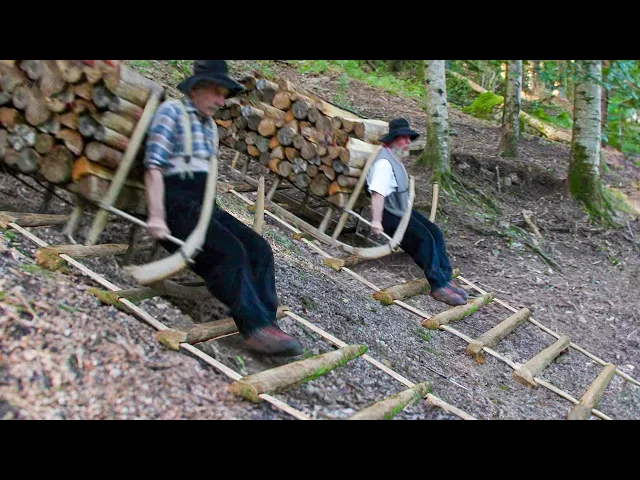 Dangerous but Genius Sliding Technique They Use to Transport Tons of Wood