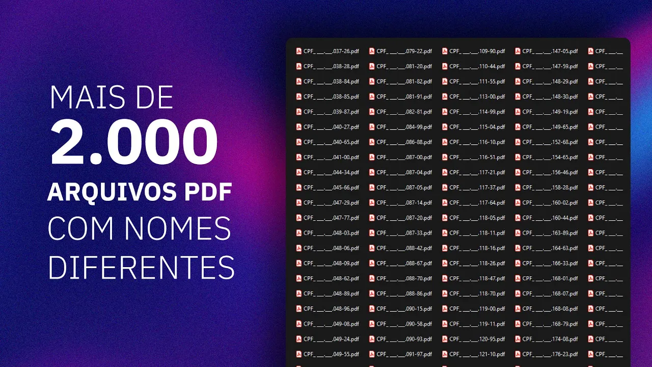 Se liga só nesse desafio eu precisava salvar mais de 2. 000 certificados em PDF dos meus alunos lá do curso de Illustrator Só que cada um dos certificados precisava ser salvo com o nome específico nesse caso o número do CPF de cada aluno gerando assim mais de 2. 000 documentos e definida que eu vou te mostrar como é que eu fiz isso usando a domínio design e o Acrobat pro DC [Música] se você quiser aprender a usar o design de verdade e criar qualquer tipo de projeto gráfico editorial livros revistas jornais e-books pranchas de arquitetura algo de fotografia e uma enfermidade de outros projetos editoriais conheço meu curso de design e Vim aprender comigo como fazer um design trabalhar para você e aí você vai ser capaz de bolar soluções exatamente começa que eu vou te mostrar nesse vídeo aqui tá bom para gente chegar no resultado que eu preciso que é mais de 2 mil 3 mil certificados cada um com o nome específico né Cada certificado econômico CPF curso carga horária a gente vai precisar utilizar dados variáveis eu não vou falar de dados variáveis nesse vídeo porque eu já abordei em diferentes momentos aqui no canal sobre como é que você pode usar dados variáveis vou deixar vários links aqui na descrição onde acordei de solidados variáveis a gente já fez desde crachás até agendas calendários então a gente pode utilizar dados variáveis de diferentes maneiras possíveis confere os links aqui na descrição para você entender melhor do que eu tô falando então vou pular essa parte e já vou direto ali para o finalmente a configuração do documento a mesclagem desses dados porque tem algumas etapas que a gente precisa configurar e depois a gente vai fazer a separação desses documentos só na coroa tá bom aí mais uma dentro tá bom se você quiser aprender a criar agendas e adicionar mais esse produto ao seu portfólio é um produto muito rentável principalmente aí na segunda semestre de cada ano se você aprender a criar agendas e oferecer esse produto no seu portfólio para os seus clientes você com certeza vai conseguir aí aumentar o seu faturamento o seu rendimento e se você quiser aprender a criar agendas tem um link de um curso meu só de agenda do Design aqui na descrição também não vale a pena você dar uma olhada beleza aí chega de enrolação vamos lá então esse aqui vai ser o resultado Tá eu vou ter aqui eu tenho quanto esse certificado esse aqui é a pasta ele tinha feito 1.