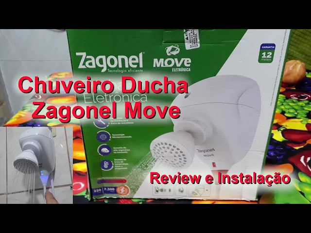 é bom gente então depois do vídeo lá do teste do chuveiro Zagonel modelo Sublime a gente optou por comprar dessa mesma marca só que esse modelo movie que tem um jato direcional Então aqui tem algumas características diz aqui que a temperatura dele é controlada por um micro-processador aqui a instalação é rápida igual do outro ele também vai ter o controle luminoso para identificar a temperatura da água aqui Esse modelo no caso é 220V 7500watts aqui tem algumas características eficiência energética dele tá lá na UFF é porque ele é bem potente ó e aqui algumas características