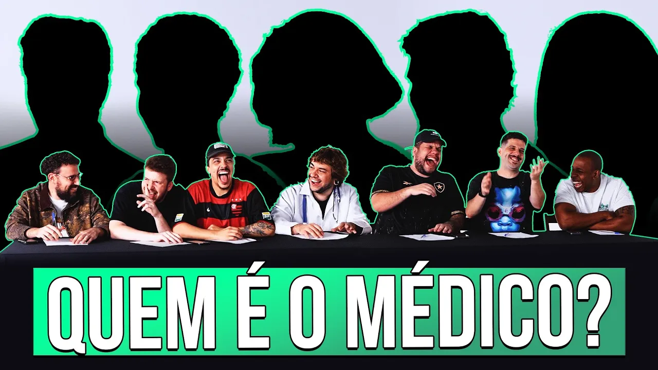 nós somos aqueles caras e hoje convidamos o Brino para tentarmos descobrir quem é o médico cinco participantes quatro impostores e apenas um que salva a vida das pessoas Será que conseguimos acertar vem [Música] [Aplausos] descobrir Beleza beleza algum desenho parece um aqu aquele malvado doutores muito boa noite que isso gente cara que que tá acontecendo aqui cara isso isso é não acreditável Brino Sai daí vem PR cá vem senta aqui não chama assim não irmão T trabalho aqui se pudesse fazer respeitar para de Ô qu eu tenho profissão você acha que eu porque eu não