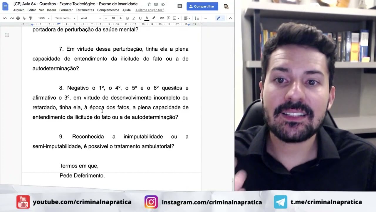 o Olá meus amigos do portal jurídico bebendo direito trago para vocês hoje uma dose de Direito Processual Penal vamos falar do incidente de insanidade mental do acusado que está prevista em nosso Artigo 149-a 154 do Código de Processo Penal e ele vai trabalhar com a possibilidade de se fazer um exame para se constatar ou não essa inventou ausência de integridade mental do acusado esse exame é muito importante porque isso vai definir os rumos do próprio processo é um tipo de exame que é realizado determinado pelo juiz que é um exame médico-legal para se apurar através