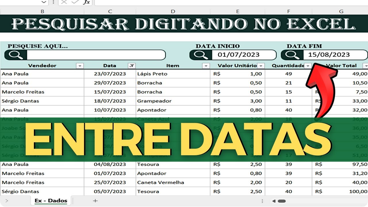 nesse vídeo você vai aprender a fazer aquele filtro ao digitar alguma coisa aqui na sua barra de pesquisa na sua planilha veja que eu tenho aqui vários vendedores aqui na minha planilha sendo lançado vendas para esse vendedor e se eu vi aqui ó na minha barra de pesquisa clico nela e começo a digitar um vendedor de forma automatizada eu trago somente as vendas lançada aqui desse meu vendedor e se eu vi aqui agora e tirar tudo que eu tiver aí na minha planilha também de forma automatizada eu consigo aí tirar o filtro da minha planilha