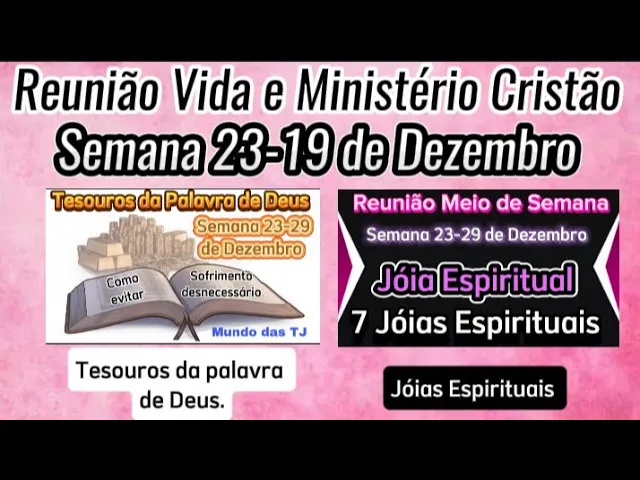 Olá meus queridos irmãos e amigos sejam todos bem-vindos mais uma vez aqui no nosso canal para juntos agora prepararmos a nossa reunião vida e Ministério Cristão da semana 23 a 29 de Dezembro selecionamos algumas parte de nossa reunião e Tenho certeza absoluta que vai ajudar em sua preparação Então vamos para o nosso vídeo [Música] então sejam todos bem-vindos mais uma vez aqui no nosso canal mundo das Testemunhas de Jeová é um prazer imenso ter vocês aqui toda semana para juntos prepararmos considerarmos as nossas partes e assim est bem mais equipado para dar nossos comentários fortalecer