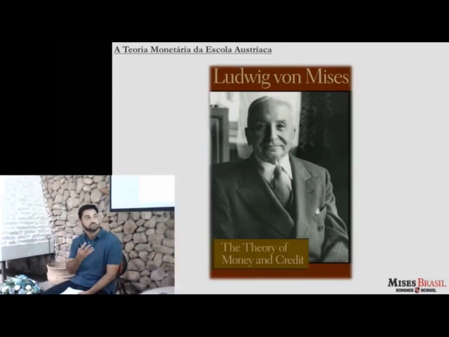 foi inclusive no livro do mises teoria do dinheiro e do crédito onde ele começou onde teve o primeiro Insight da teoria dos ciclos econômicos que depois começou a ser desenvolvida e ou estendida aprimorada e se chamou depois de teoria dos ciclos econômicos Mas essa eu não vou entrar em detalhe vou deixar pro Bira a que eu também vou falar sobre isso a questão da inflação também é uma uma das um dos principais conceitos implicações que a gente tem na na teoria monetária da escola austríaca e que ela está posicionada quase que isolada nesse conceito porque