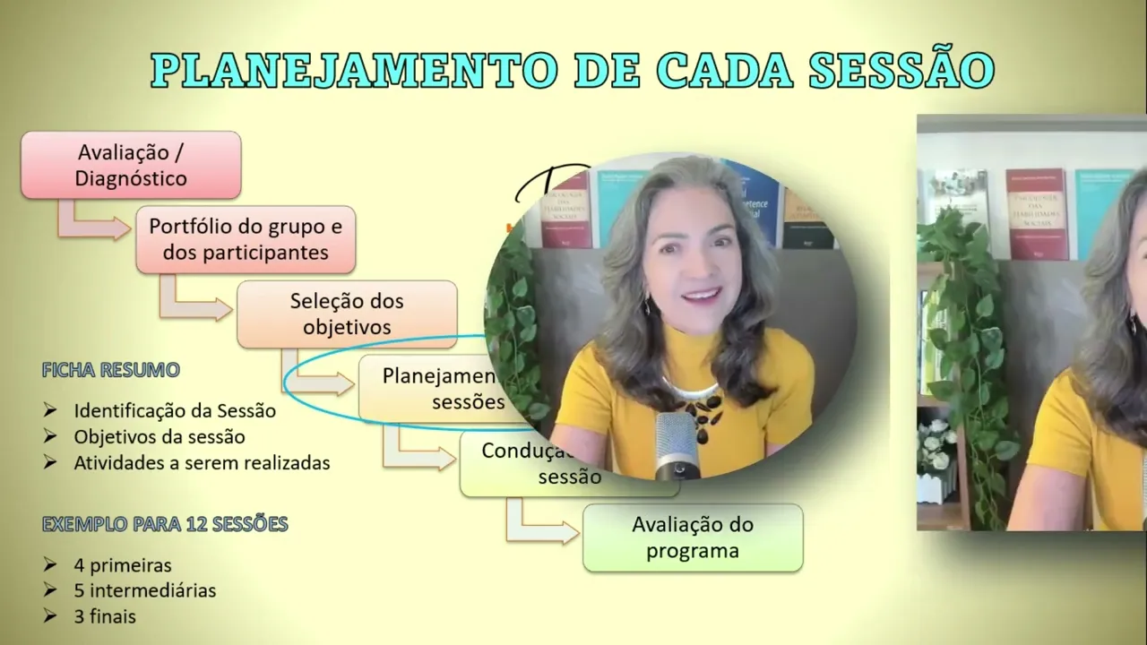 de promoção de competência social e habilidades sociais bom essa organização então é o tema dessa aula para que você tenha uma ideia do fluxo mais provável de ser efetivo para que você tenha pelo menos um modelo de sessões para você poder planejar as suas adaptando Claro as características dos seus clientes as dificuldades dos seus clientes e isso vai ser muito importante você não pode eh simplesmente copiar essas mesmo essas que a gente tá apresentando elas são uma estrutura uma um direcionamento mais geral que vai ser detalhado em função daquilo tudo que se avaliou dos seus