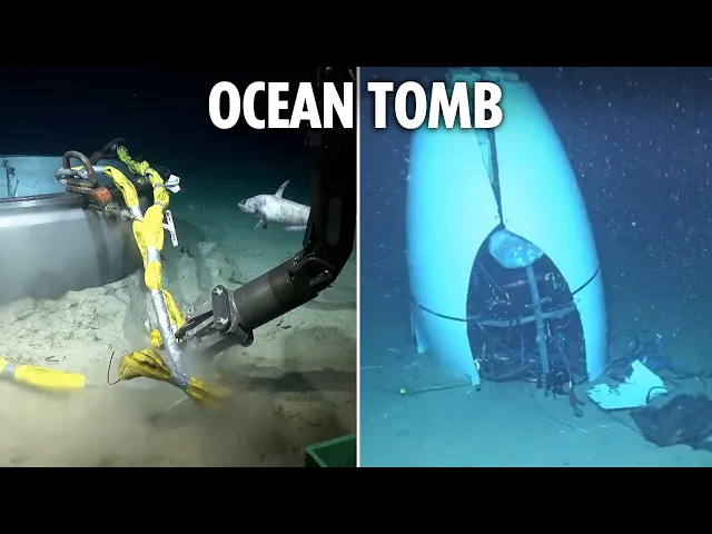 Crumpled wreckage of Titan sub is picked through by underwater drone in chilling new footage