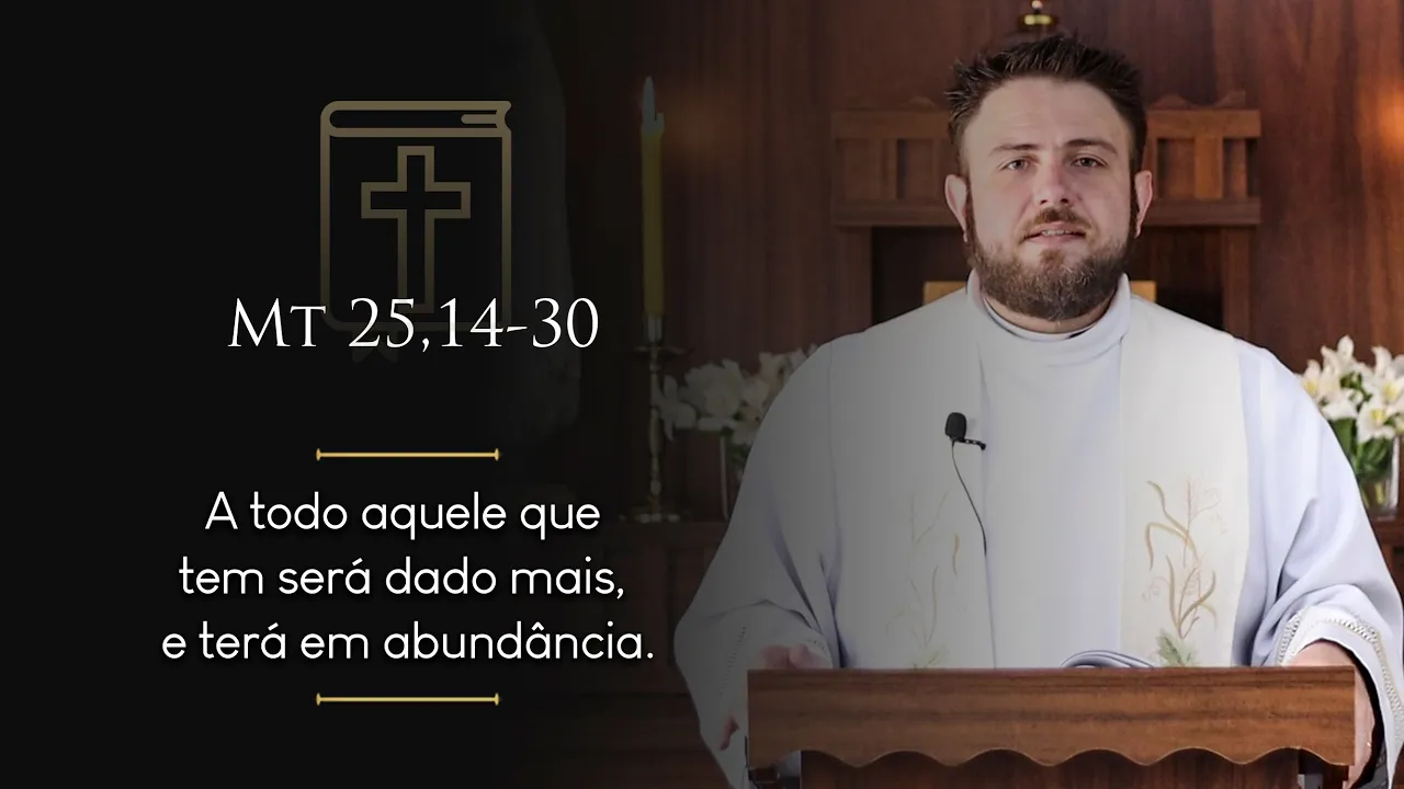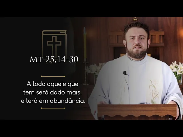 todo aquele que tem será dado mais E terá em abundância mas daquele que não tem até o que tem lhe será tirado quanto a este Servo Inútil jogado lá fora na escuridão Ali haverá choro e ranger de dentes palavra da salvação glória a vós senhor os irmãos o evangelho de hoje nos fala portanto que nós temos talentos e que nós estamos essa vi a lucrar fazer esse talento crescer para o nosso patrão que é Deus a umidade 5 outro dois outro um talento aí quando a gente escuta isso aqui a gente quase fica com dó