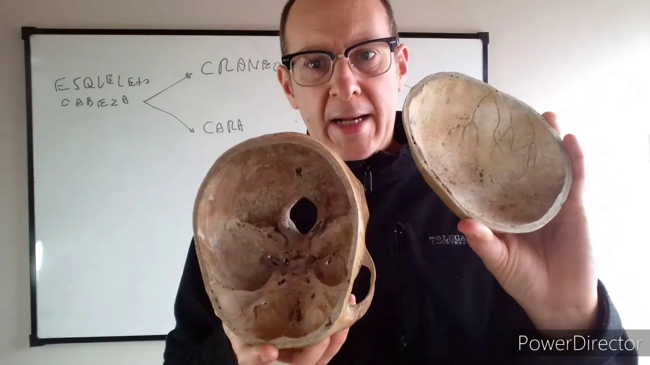 y tal como están muy buen día para todos hoy vamos a comenzar con el ciclo de cabeza y cuello y como siempre lo hacemos arrancamos con la parte de hueso con la parte de osteología entonces vamos a hablar del esqueleto de cabeza y cuello en estos primeros teóricos el esqueleto de la cabeza va a estar formado por dos partes el cráneo y la cara entonces el esqueleto de la cabeza va a estar formado por el cráneo y por la cara qué es el cráneo en la parte del esqueleto de la cabeza que aloja el encéfalo