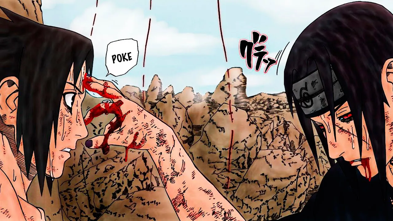 do clã Uchiha para ele mas depois quando ele para definitivamente atacar Sasuke seu irmão consegue quebrar a técnica com seus olhos comuns o que ele também consegue surpreender a idade principalmente porque exigiu preparação o que mostra que Sasuke não estava cego pelo Ódio e era extremamente poderoso mostrando que seu irmão havia realmente se tornado alguém forte o famoso cutucão que tá te dá na testa de Sasuke é um gesto de carinho mas também um gesto para afastamento no contexto dessa luta Eu acredito que ele cumpre exatamente segundo propósito e Tati revela muito a Sasuke mas