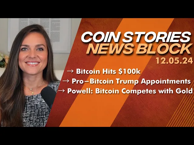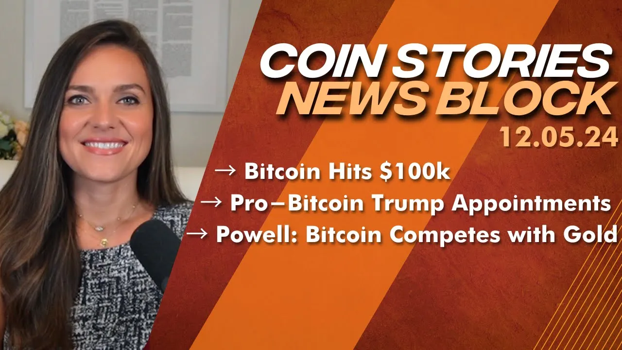 hey everyone welcome to the coin stories news block I'm Natalie Brunell Bitcoin has officially hit six figures it soared past the 100K Mark for the very first time in history at around 10:00 Eastern Wednesday night and what a milestone congratulations to everyone who held through the bare market and the best part we are still just at the launching pad and we have a very long way to go all right with that this week fed share Jerome Powell called Bitcoin a competitor to Gold but not the US dollar U people use Bitcoin as a speculative asset