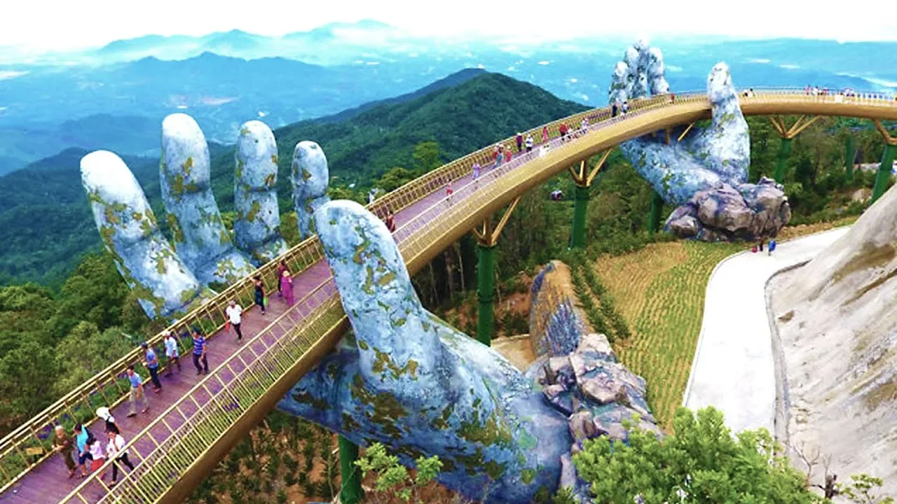 fala pessoal no nosso planeta há muitos lugares bonitos interessantes que gostaríamos de visitar no entanto a terra é incrivelmente grande ea vida humana é curta então como escolher entre as milhares de paisagens aquelas que você definitivamente deveria ver com seus próprios olhos não se preocupe pois esta lista de hoje foi feita exatamente para você vamos lá ponte de ouro o vietnã tem muitas atrações turísticas e uma delas está localizada na cidade de da nang a ponte de ouro tem 150 metros de extensão e vale uma visita mesmo que você não goste muito de visitar pontes
