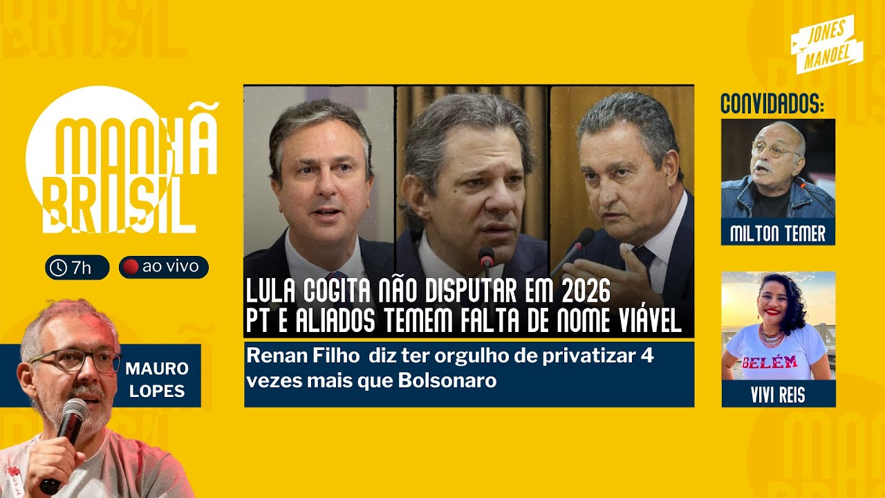 isso aí [ __ ] quadro da esquerda brasileira [Música] eh obrigado obrigado demais que agradeço Mauro fazer mais vez não só para comentar quando eu fiquei sabendo eh do manhã Brasil o Jones me comentou comigo que ele tava com esse novo projeto com essa nova história tal então eu fiquei sabendo aí eh de antemão e eu fiquei muito feliz e e muito contente de ver que você apresentaria o programa eh que eu acho que é um Jornalista que tem tem um trabalho aí há muito tempo que tem um trabalho na comunicação muito importante então O