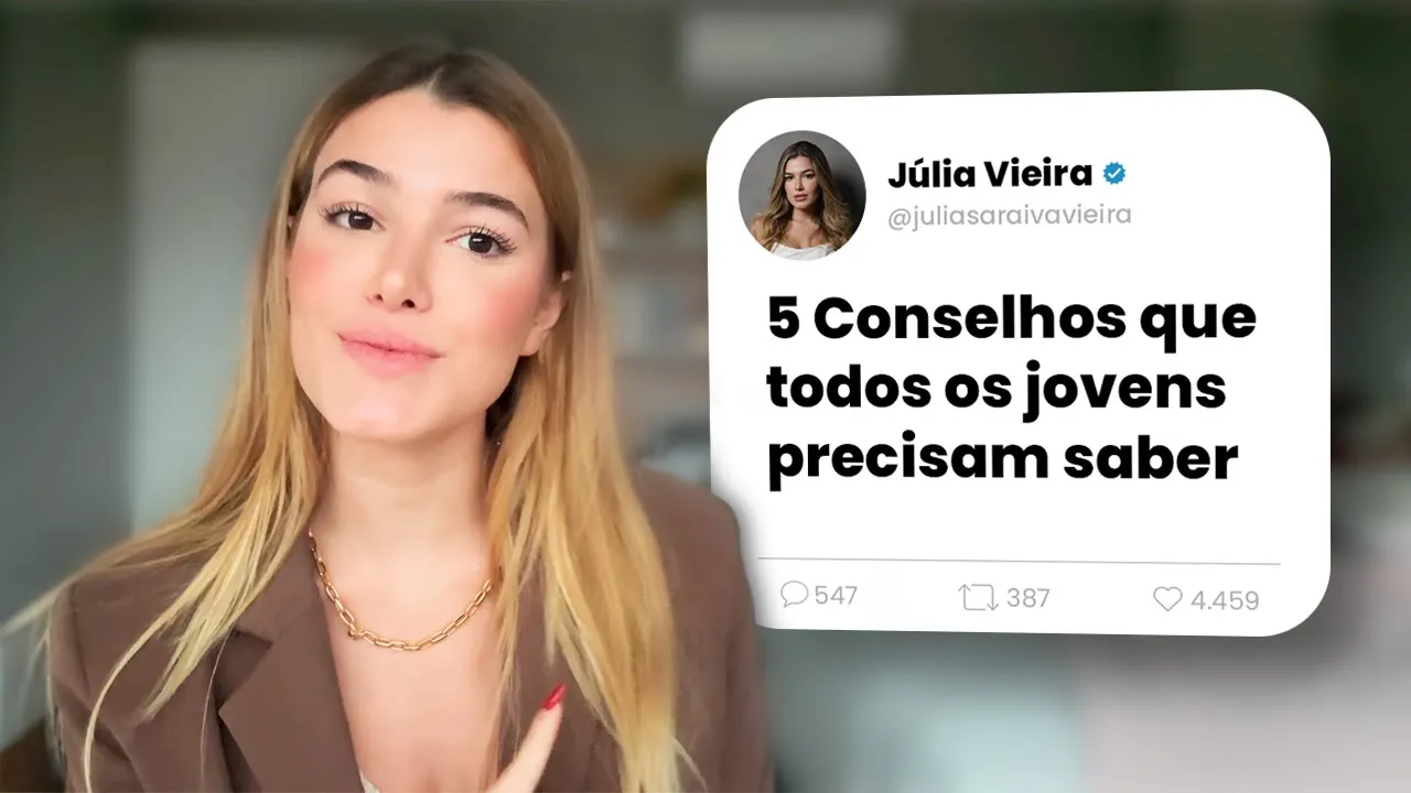 nesse vídeo você vai ouvir os cinco conselhos mais importantes para qualquer pessoa que tem entre 20 e 30 anos eu sou Júlia sarai vou Júlia Vieira da maneira que você preferir e seja bem-vinda a mais um vídeo no meu canal esse canal vão fazer 3 anos de existência dele só que eu fui uma mãe ruim eu abandonei o meu filho abandonei o meu canal no último ano me perdoem não porque eu prometo que agora eu voltei e eu voltei para ficar porque aqui é o meu lugar bom e eu não voltei com qualquer vídeo eu