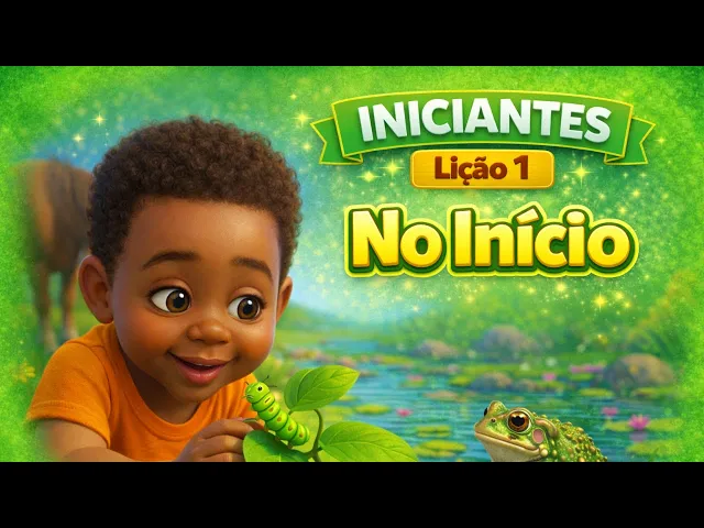Hoje vamos ler do livro iniciante, ano A, primeiro trimestre, [música] no início, semana número um. Se você quiser acompanhar, pode abrir na página cinco [música] ou procurar a imagem de um cavalo marrom que parece estar muito curioso com o sapinho verde sentado na vitória réja. Você conseguiu encontrar?