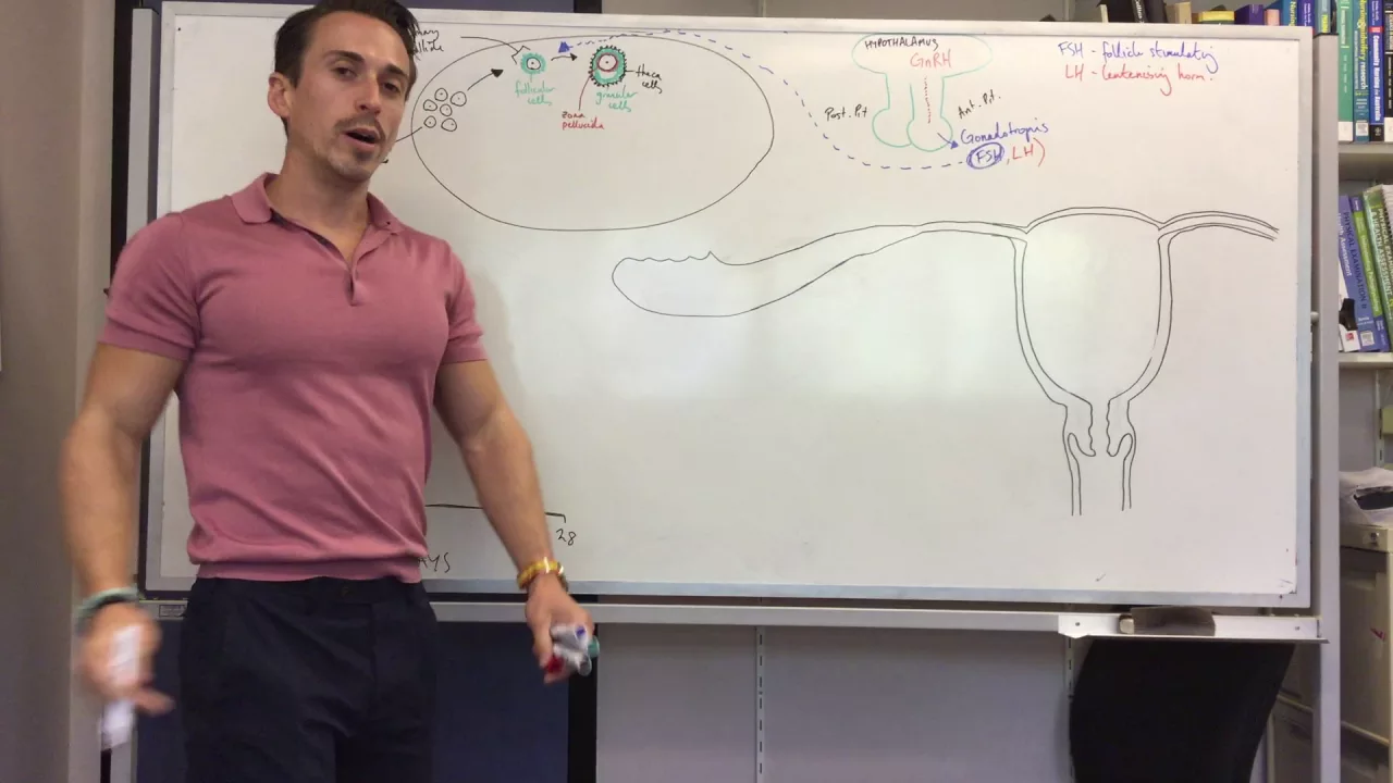 have now turned into primary fol follicles with these folicular cells providing nourishment to the uite now they want to go to the next form which are called secondary follicles but they can't unless a particular hormone is released now the hypothalamus has a number of different hormones that it releases one is called gonadotropin releasing hormone gatot tropin releasing hormone so let's write that down Gat tropen releasing hormone what this means is this hormone releases gatot tropin because it's a gatot tropin releasing hormone what a gatot tropins well gado refers to sex cells so this is going