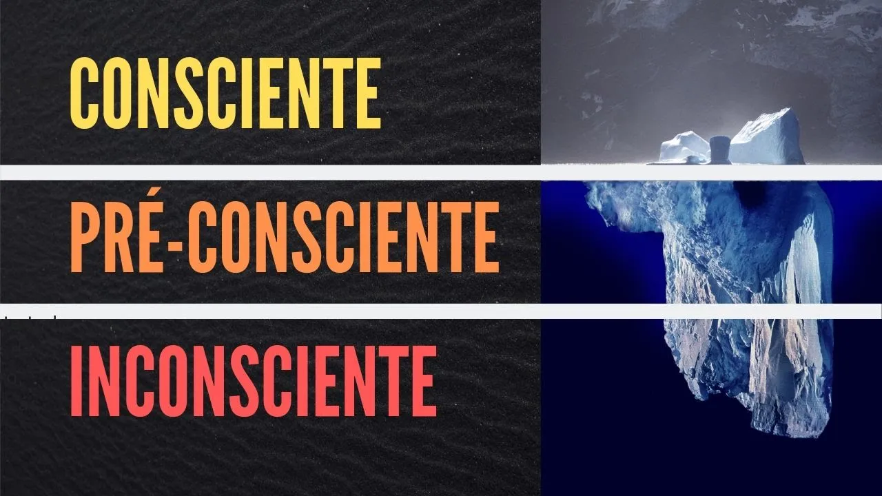 se você olhar de fora do mar você essa parte aqui é que é visível é que é aparente a partir da consciência está ligado a isso ao que você vê entre aspas aquilo que emerge aquilo que aparece na sua mente na sua consciência esse é o sistema consciente o preconceito está ali no meio ou seja não é directamente visível mas é fácil de ser visível se der um mergulhinho que cv ea parte inconsciente a parte mais profunda e aí a gente tem dificuldades de dever de pensar como se fosse selar esse fundo que no fundo