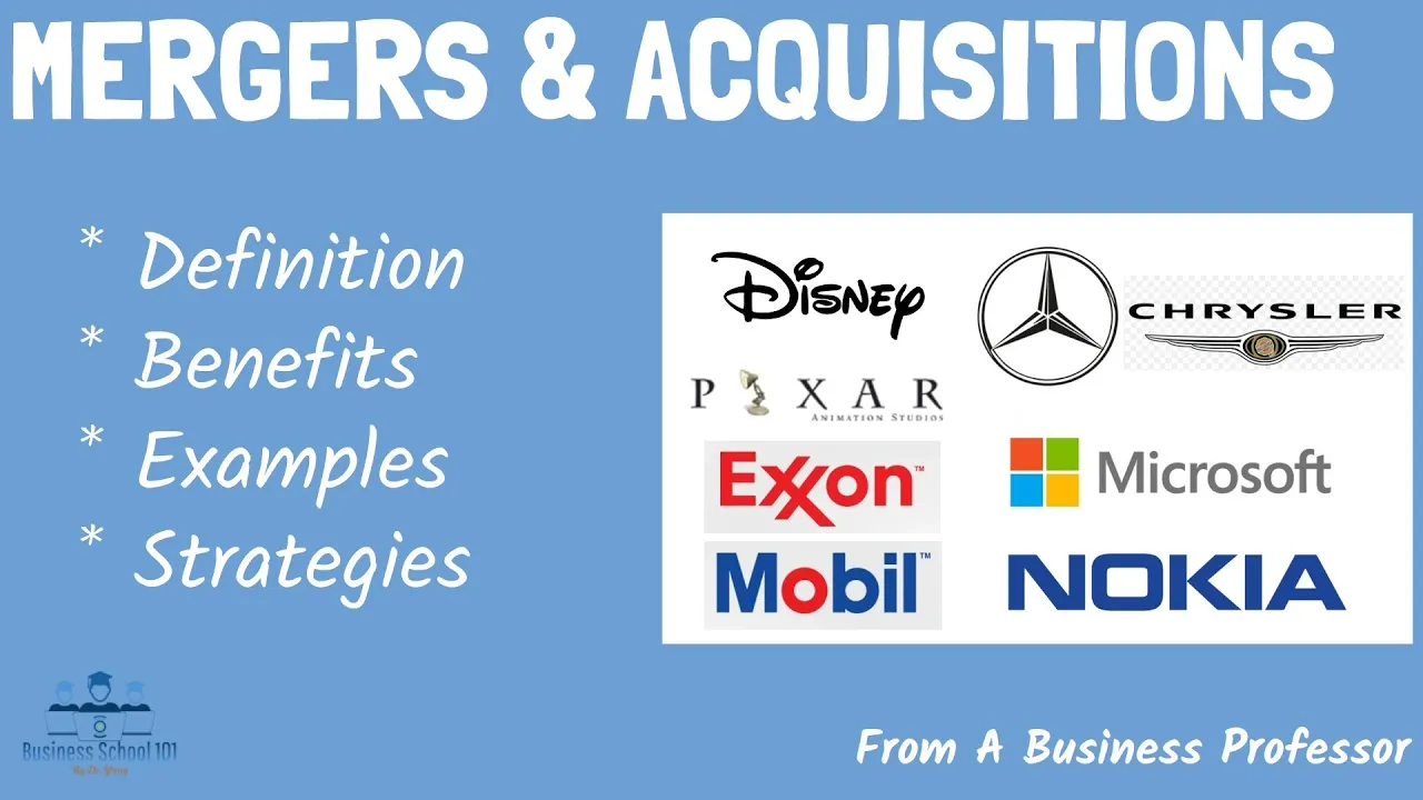 hello everyone welcome to business school 101 big firms often use mergers and Acquisitions to better expand their businesses and compete with their competitors for example T-Mobile and Sprint completed their merger in 2020 creating a new wireless carrier with a customer base of over 100 million subscribers in 2014 Italian automaker Fiat completed its acquisition of American automaker Chrysler creating Fiat Chrysler automobiles the world's seventh largest automaker at the time Amazon acquired Whole Foods in 2017 to gain access to Whole Foods customer base and physical stores Google acquired YouTube in 2006 to expand its reach in the