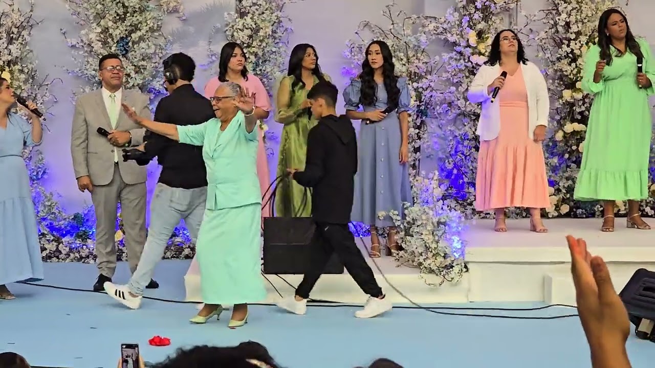Isaías Capítulo de número 6 a partir do versículo de número um eu sou Acompanhada pela Eveline Ventura minha amiga EV uma serva de Deus muito querida fica de pé pessoal ver sua beleza e elegância Deus te abençoe opa é uma pregadora uma escritora esposa de pastor serve no ministério e Deus me deu alegria de tê-la também nos ajudando no meu ministério me enriquecendo me ensinando me abençoando fazendo bons apontamentos para eu melhorar Que Deus traga para sua vida pessoas que melhorem a sua vida e melhor você tá bom ao fimar este culto esta reunião espiritual