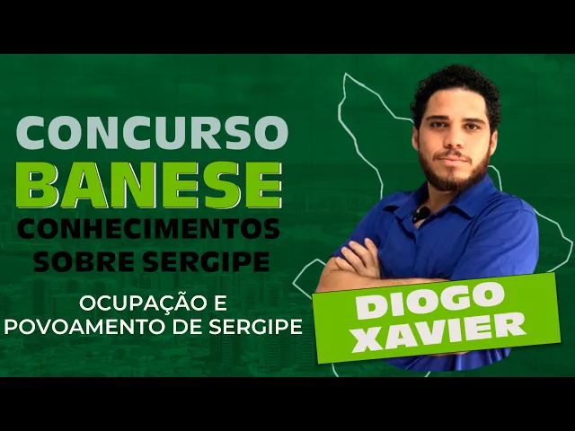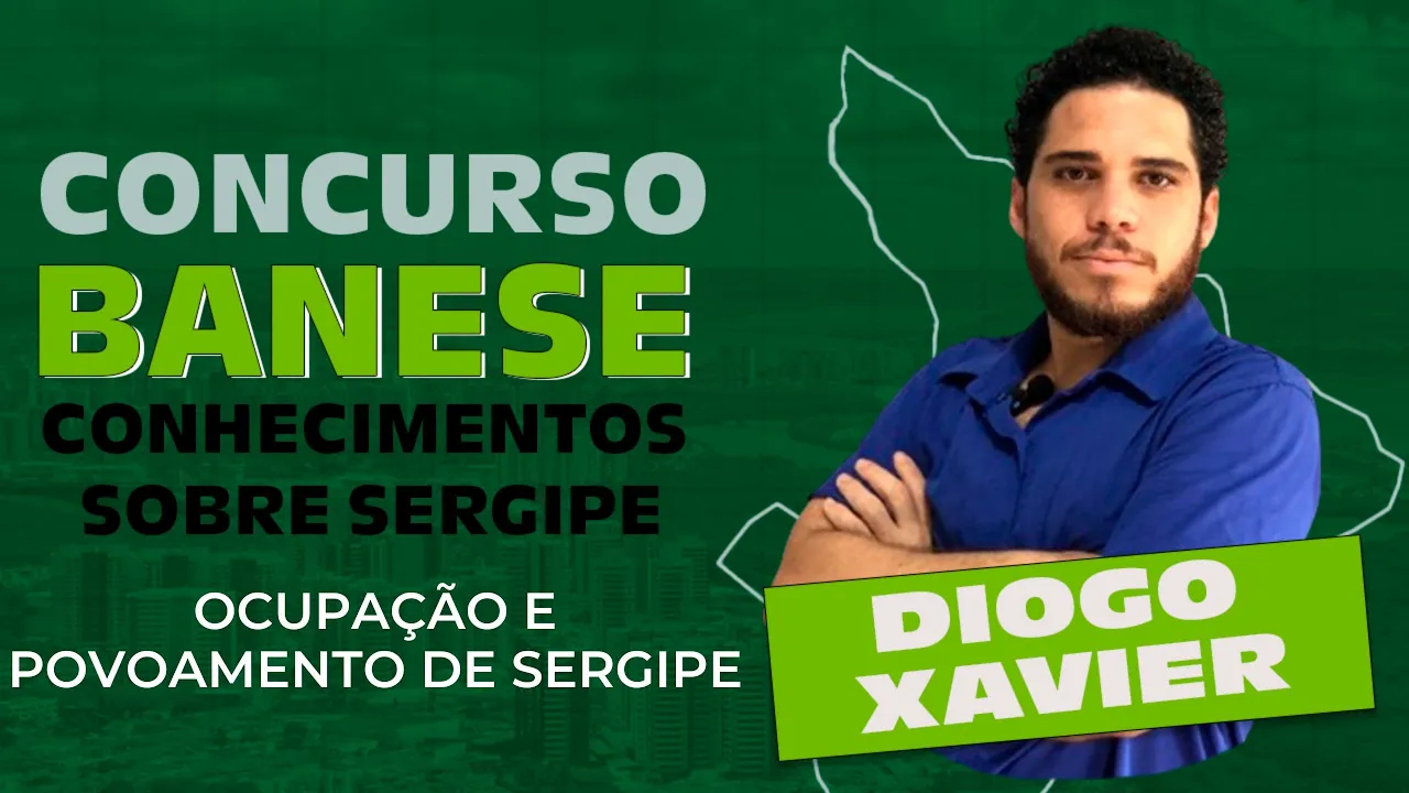 salve salve meu povo Professor Diogo Xavier na área para mais uma aula do concurso do banes tratando sobre conhecimento sobre o estado de Sergipe na aula de hoje a gente vai tratar sobre o tema de ocupação e povoamento de Sergipe Esse concurso que saiu aí na semana passada aqui no nosso canal a gente vai ter vídeos tratando de toda essa parte de conhecimento sobre sergip então você que tá gostou da primeira aula ou que não chegou por aqui agora a gente tem material vai ter material completo aqui no canal Então se inscreve certo se inscreve
