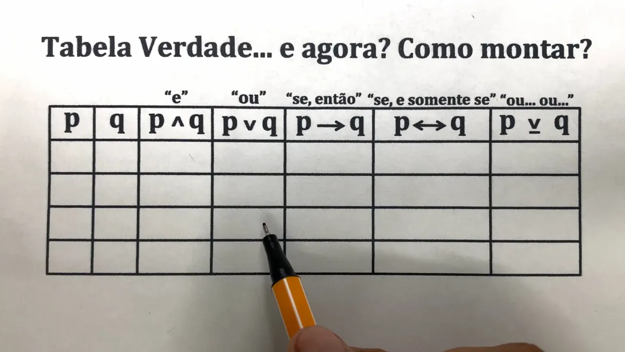 tabela verdade e agora como montar muita gente sente dificuldade né Na hora de montar a tabela verdade então preste atenção Anota tudo que eu vou falar nesse vídeo que eu vou dar uma dica top para montar tabela verdade dos conectivos e ou se então Se e somente c e ou ou Valeu tentem montar sozinhos aí depois me fazem nos comentários se vocês acertaram mas vai anotando tudo aí que eu vou falar beleza ó tabela verdade do p e q isso aqui tem que estar no sangue pessoal você vai colocar aqui ó VV FF isso aqui